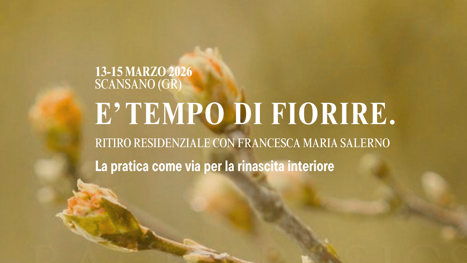 È tempo di Fiorire è un ritiro pensato per offrire uno spazio di pausa, ascolto e rigenerazione, in cui tornare all’essenziale, lasciar andare quello che non ci serve più e prepararsi con consapevolezza e presenza a un nuovo ciclo vitale.